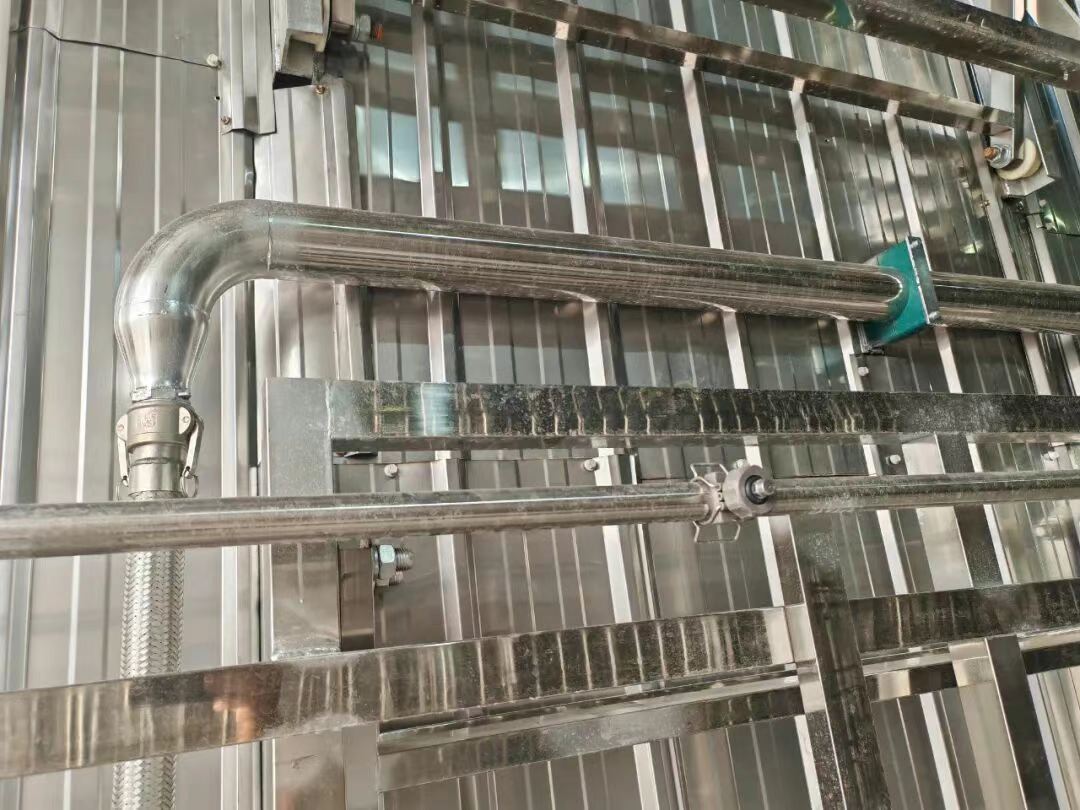 喷淋系统 管道材料主管道采用不锈钢管,支管采用不锈钢管材,控制阀门采用蝶阀,进水处设Y型过滤器。                                管路设有压力表、流量计。保证设备正常运行。支管排列均匀,保证淋雨段内降雨均匀。