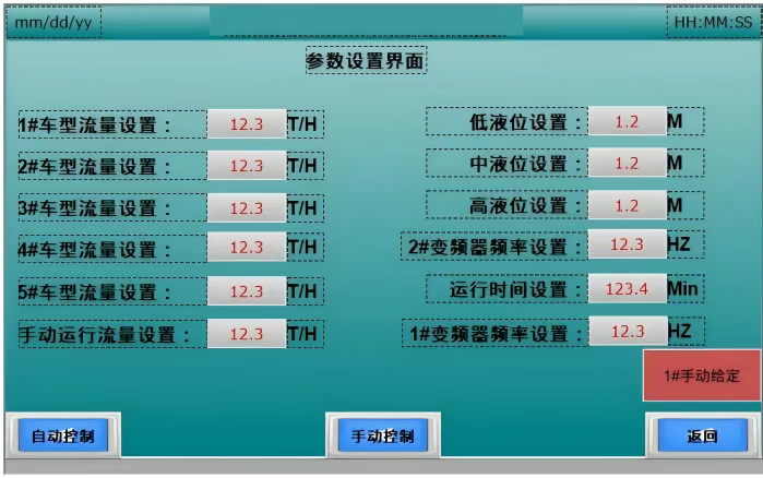 ●自动控制:在运行参数设定好,降雨及AB区相关的设定参数,输入车型,按每个参数的触摸键,会弹出的数字输入键盘,即可设定你要的参数,根据实际情况进行设定。
